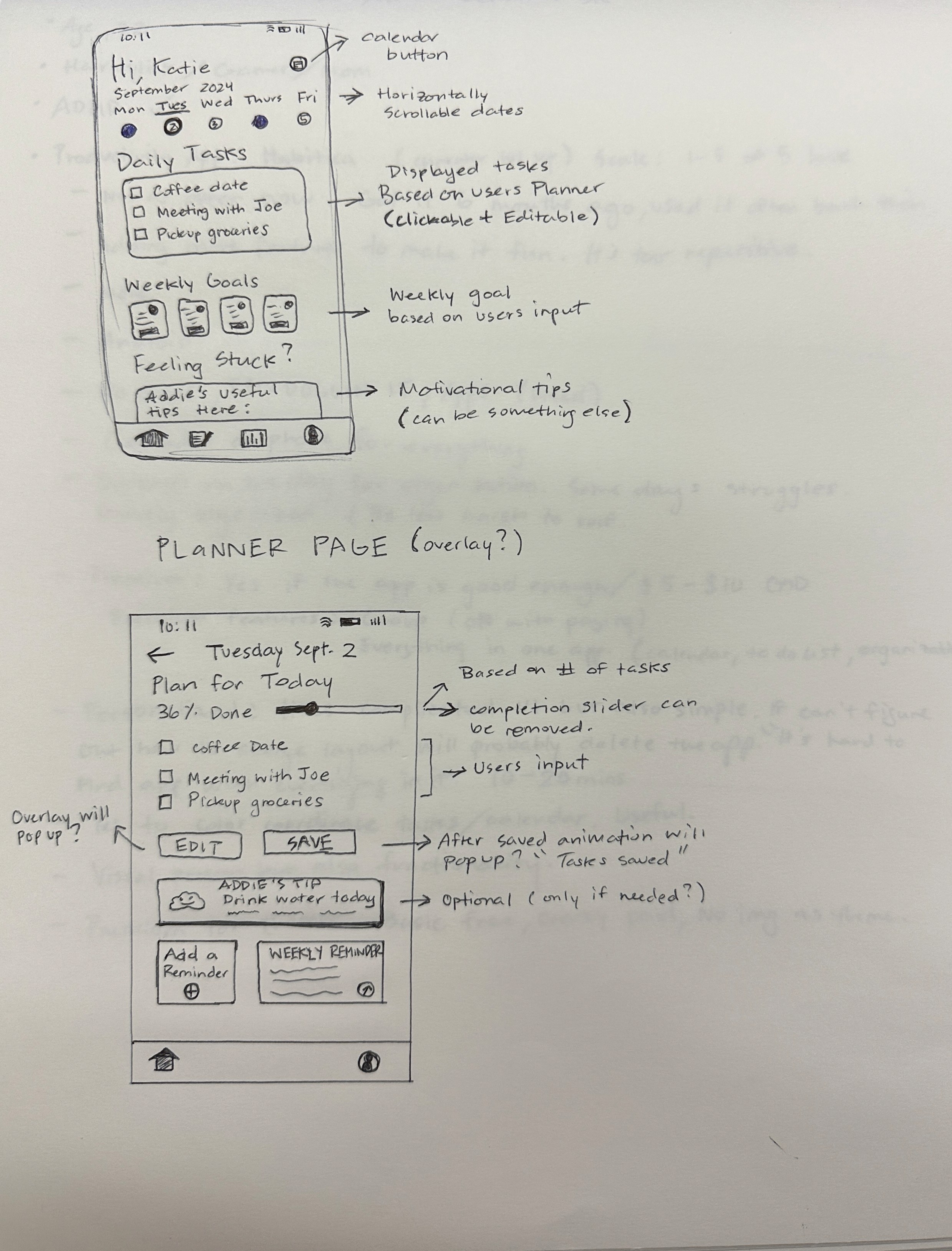 Simplicity and integration were still the focus, but we also explored new features to see how they could fit into the app without making it overwhelming. This sprint was all about deepening our understanding of our audience and getting Addie ready for more detailed usability testing in the next phase.