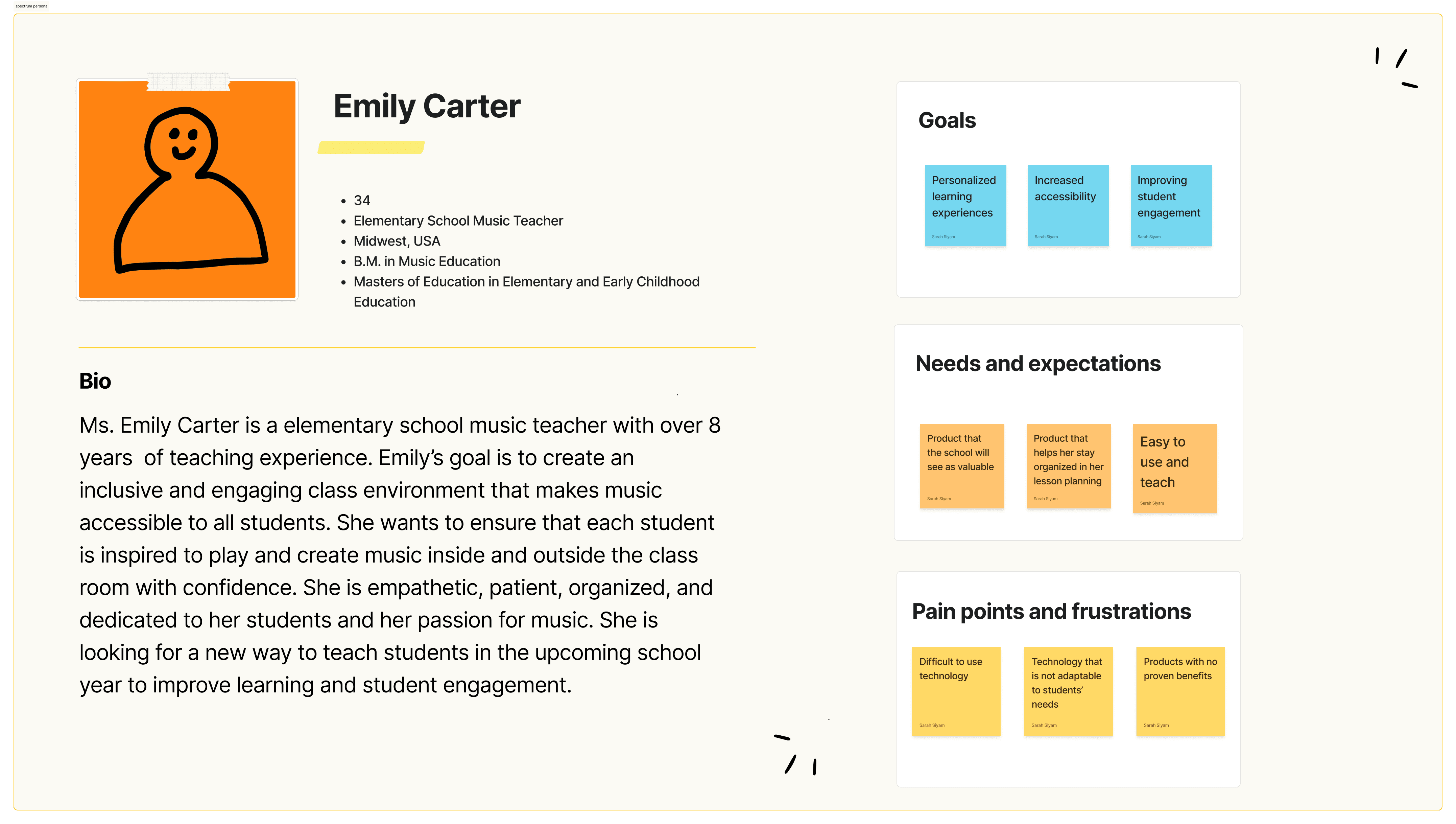 To design a landing page that truly meets the needs of SpectrumPlay’s audience, we created a persona based on research and stakeholder insights.