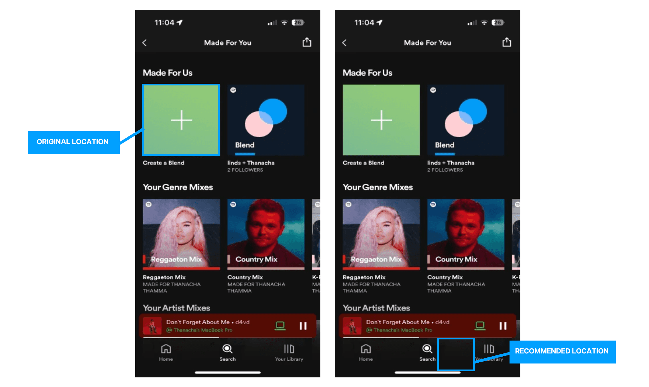Recommendation: Add a one-click shortcut for Blend to match the intuitive design of other Spotify features.